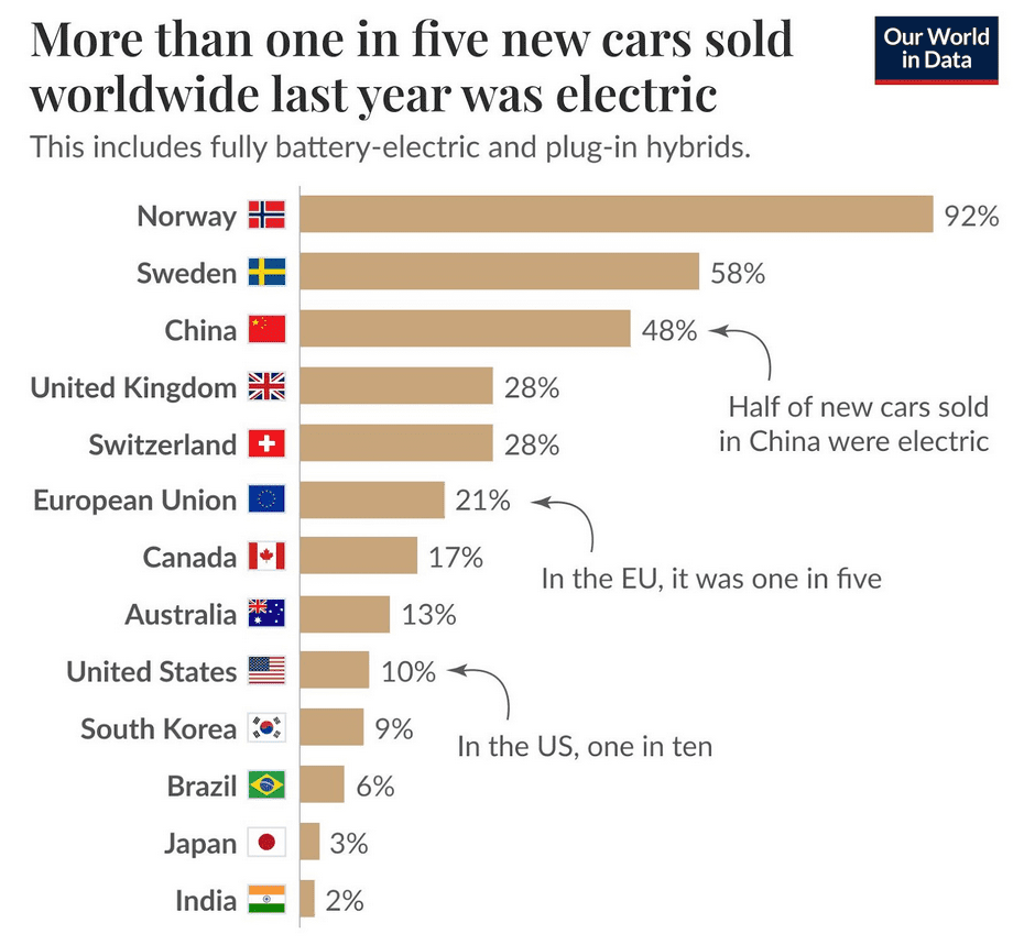 In some other jurisdictions, automakers are already selling ZEVs as even greater portions of their new car sales, as this graph sets out: